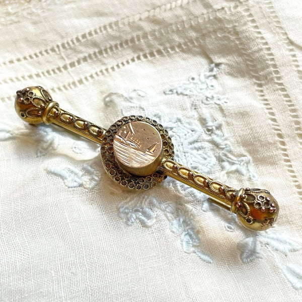 SOLD Vintage/Antique Edwardian/Victorian Brooch, Etched Landscape