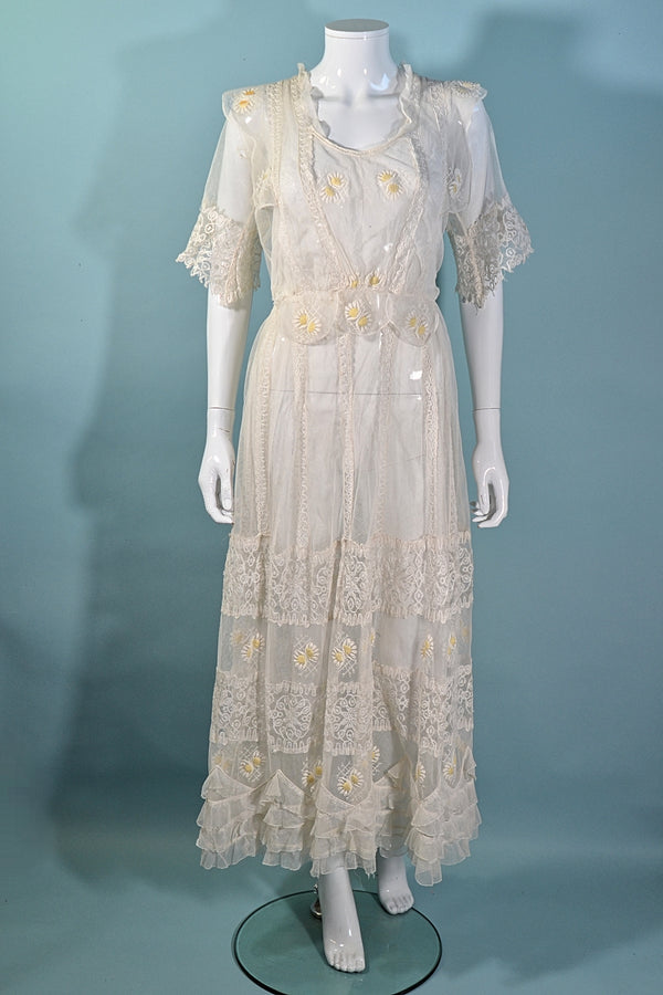SOLD Vintage/Antique Edwardian White Lace Embroidered Party Dress M