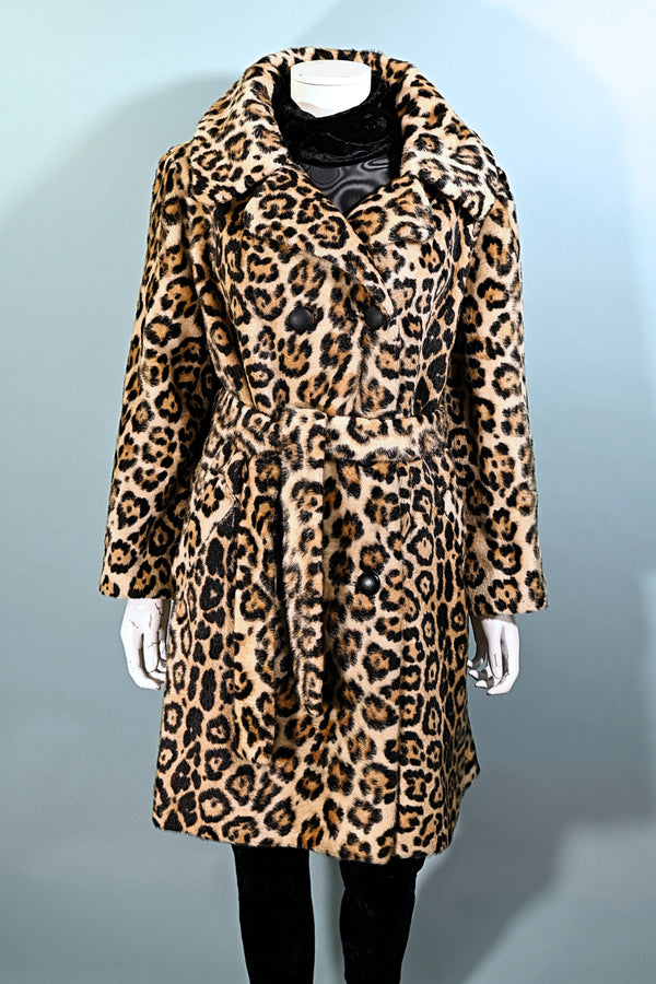 SOLD Safari/Fairmoor/LaFrance Vintage 60s Faux Fur Leopard/Jaguar Coat, Double Breasted Belted Coat L/XL