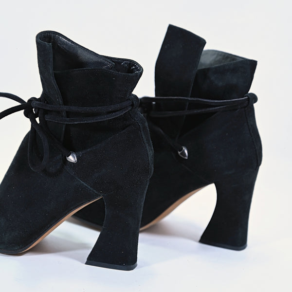 SOLD Via Spiga Y2K Black Suede Ankle Boot, Pointy Toes Wedge Heels 7.5