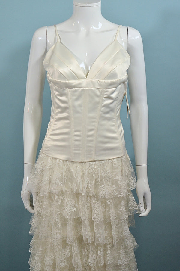SOLD Unworn Jessica McClintock 90s Lace Party/Wedding Dress, Corset Top, NOS w/Tags XS/XXS