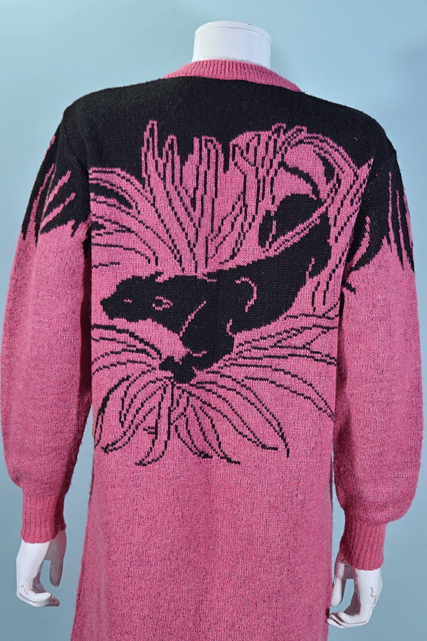 SOLD RARE Fiorucci Vintage 80s Pink/Black Leopard Sweater Dress M
