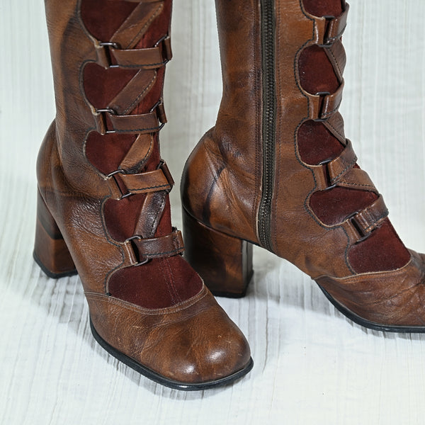 SOLD Sbicca Vintage 70s Lace Up Leather Boots, Granny Campus Packer Boots 8 1/2