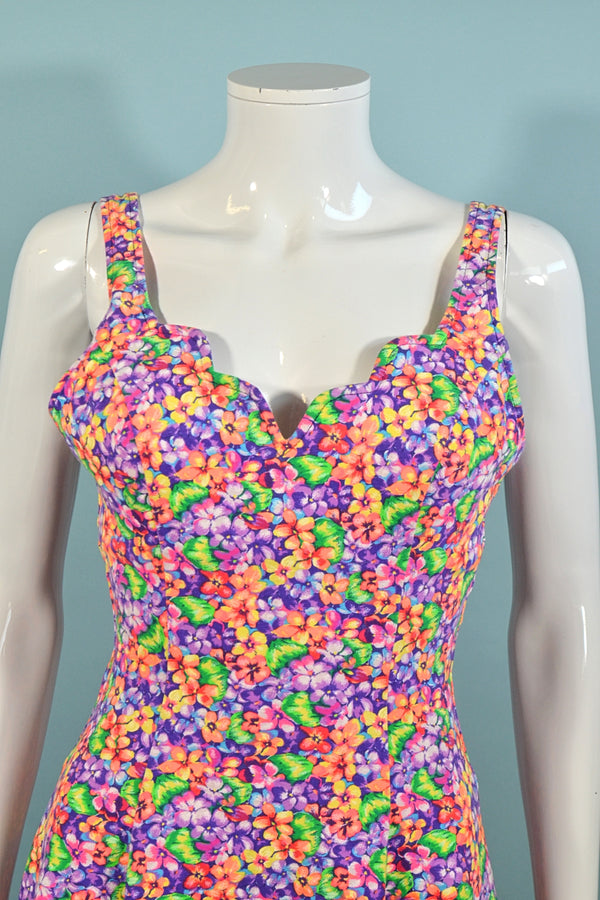 SOLD Sassafras 90s Y2K Neon Floral Print Mini Dress, M