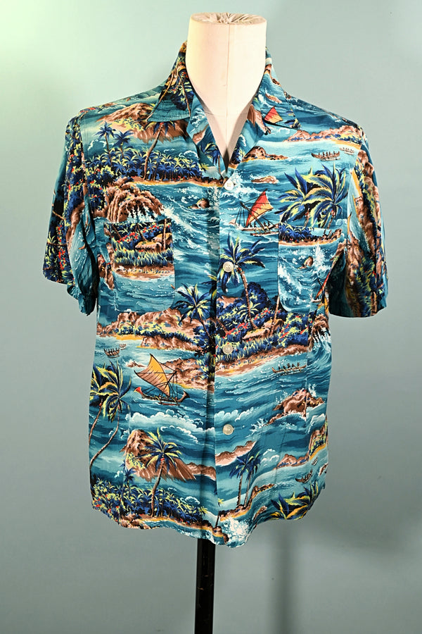 SOLD Penny's Vintage 50s Rayon Hawaiian Shirt, Made in Japan M