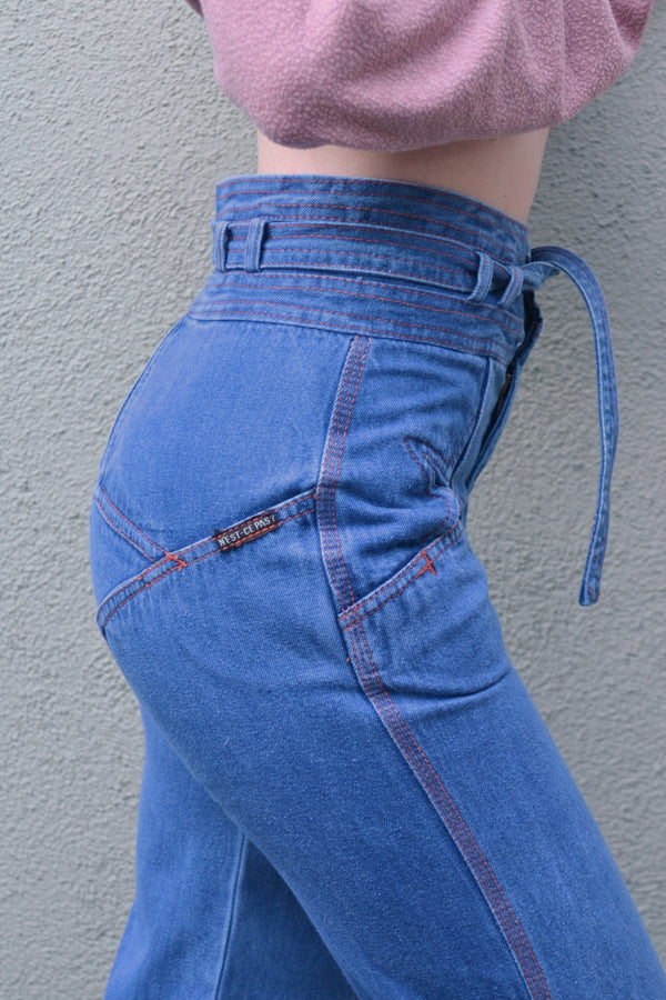 SOLD RARE Vintage 70s N'est Ce Pas? Star Jeans, High Waist + Belt, Bell Bottoms