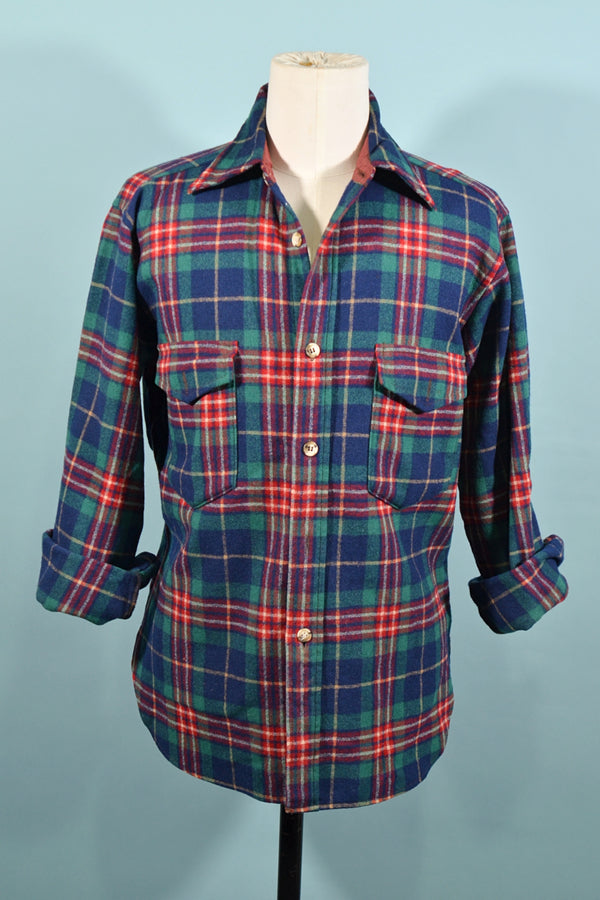 SOLD Pendleton Blue/Green Wool Tartan Plaid Shirt M