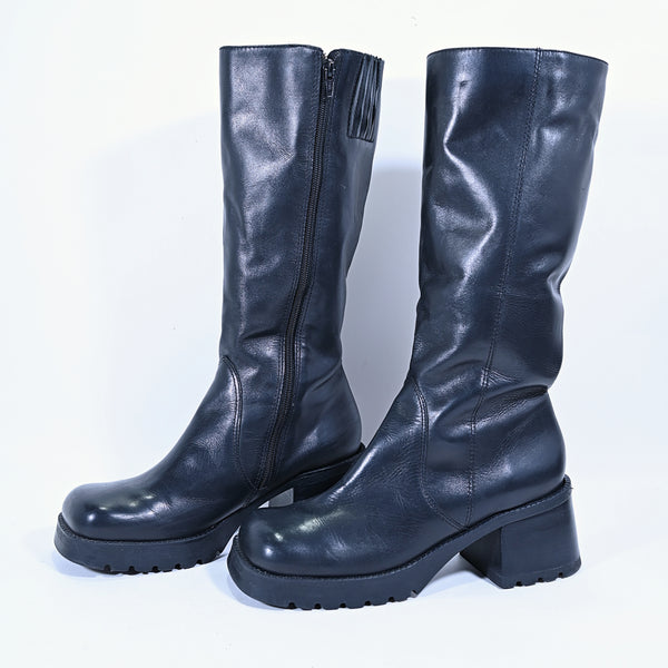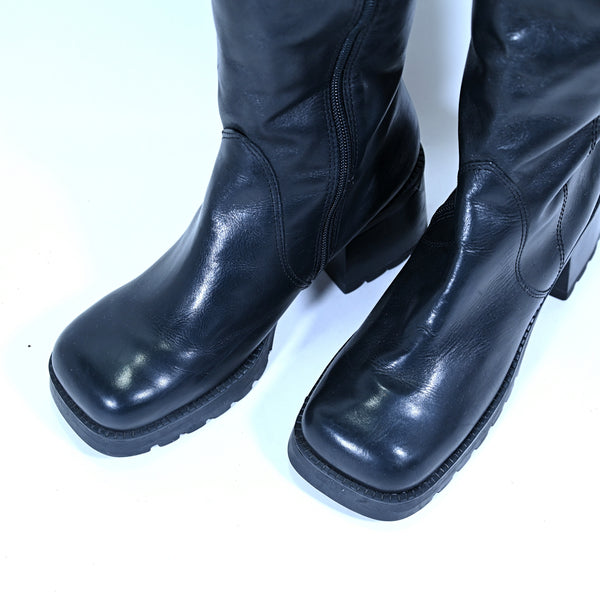 SOLD Two Lips 90s Black Leather Grunge Tall Boots, Y2K Square Toe Boots 10M