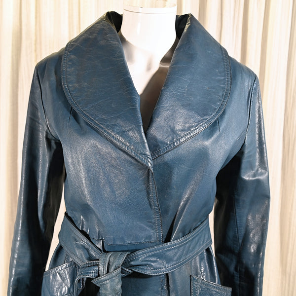 SOLD Vintage 60s/70s Blue Leather Jacket, Mod Belted Jacket M
