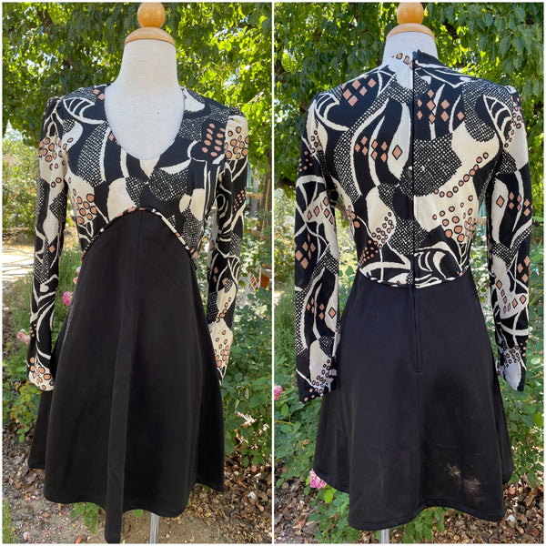 SOLD Vintage 60s Mod Mini Dress, 70s Abstract Pattern Dress S