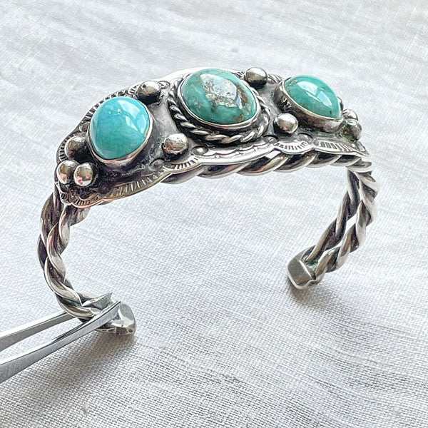 SOLD Vintage 60s Silver Turquoise Navajo Bracelet, Native American Cuff Bracelet