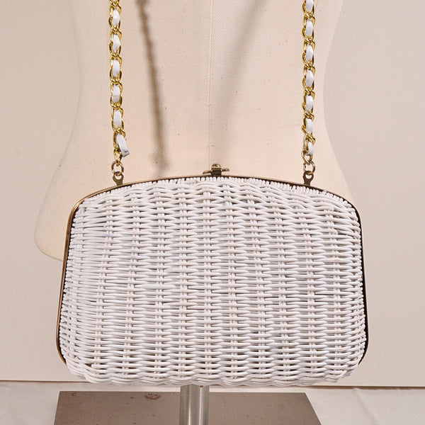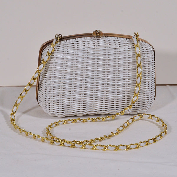 SOLD Vintage 60s White Vinyl Wicker Shoulder Handbag, Clutch Bag by Waves