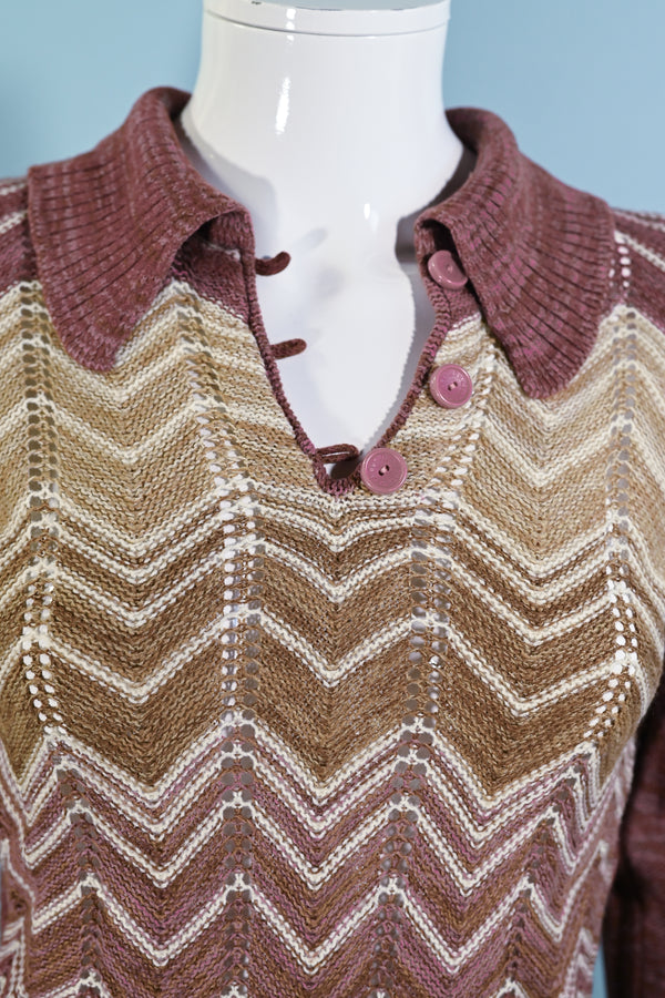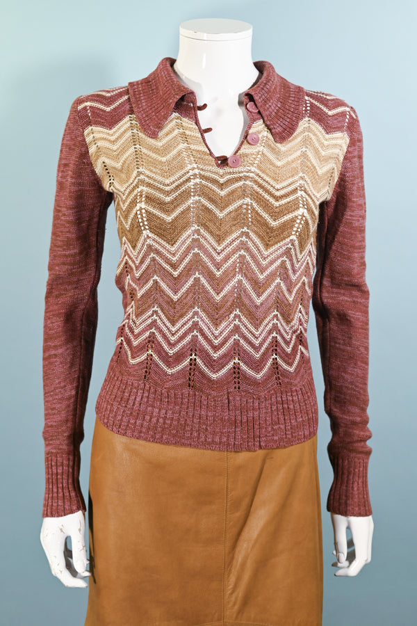 SOLD Vintage 60s/70s Pullover Sweater, Burgundy/Tan Variegated Acrylic S