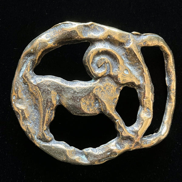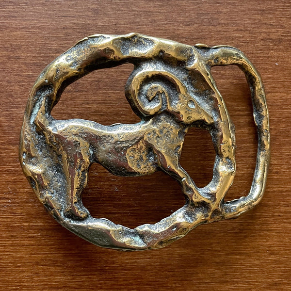 SOLD Vintage 70s Aries Brutalist Abstract Brass Belt Buckle