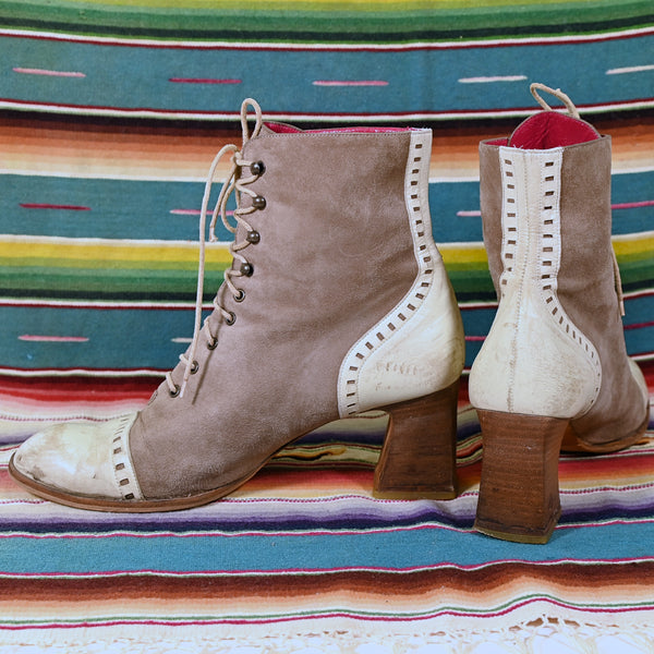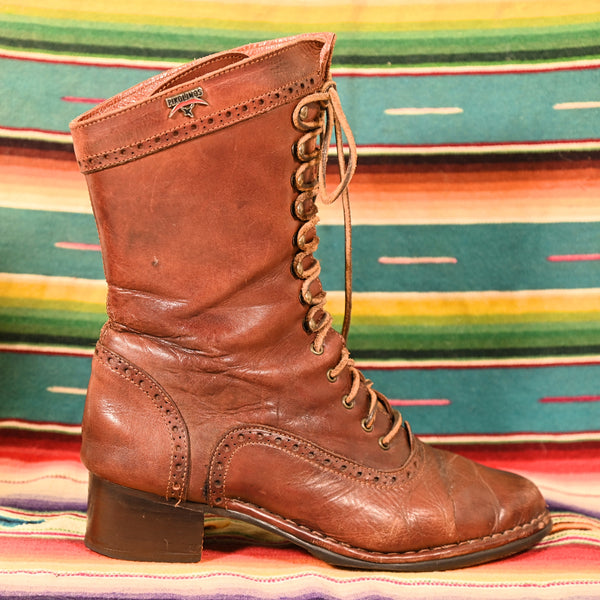 SOLD Vintage 70s Brown Leather Granny Lace Up Boots, Victorian Revival Well Worn Boots, Pikolinos SZ 8