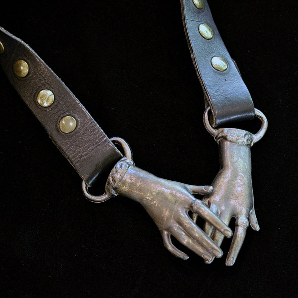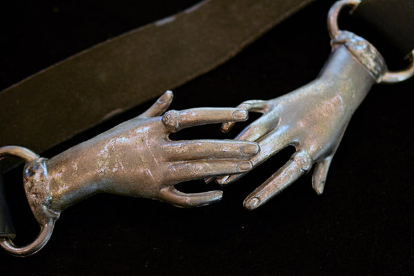 SOLD Vintage 70s Bronze Clasping Hands Belt, Victorian Revial Hippie Belt