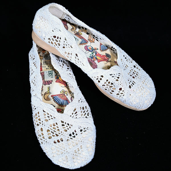 SOLD Vintage 60s/70s White Lace Crochet Shoes 8 1/2