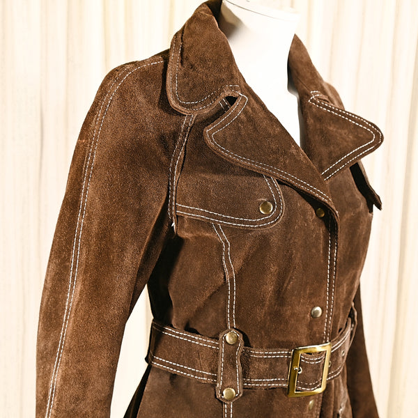 SOLD Vintage 70s Brown Suede Belted Jacket, Mod Mini Coat, The Tannery S/M