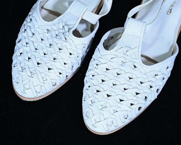 SOLD Vintage 60s/70s White Leather T Strap Shoes, Fisherman Style SZ 9