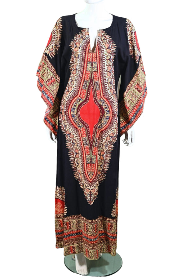 60s Caftan Bohemian Hippie Dress Loungewear, Block Print from Pakistan S