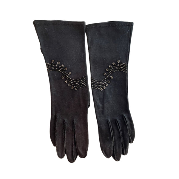 1940s Vintage Beaded Cotton Gloves, Brown Fancy Gloves SZ 6