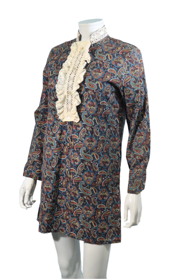 60s Mod Mini Dress, Lace & Paisley Print Dress, Carol Brent S