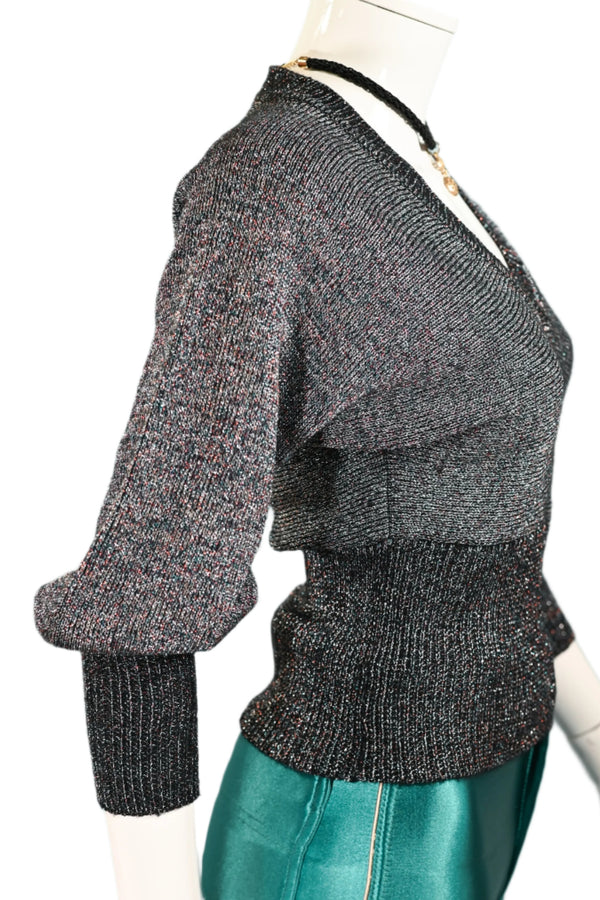 Vintage 70s Metallic Sparkle Sweater Batwing Sleeves S