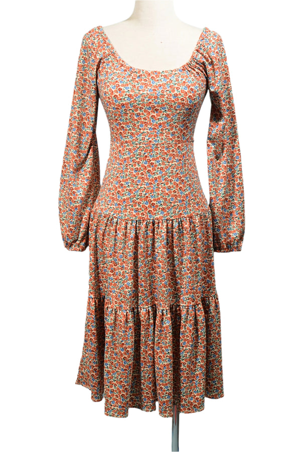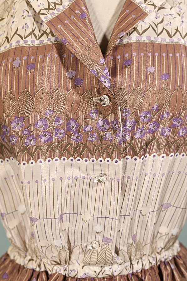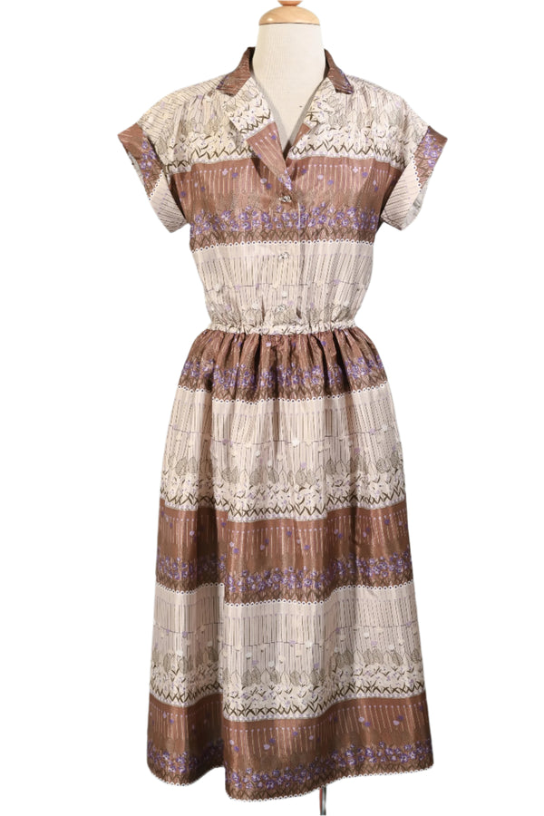 60s/70s Day Dress, Whimsical Floral Pattern S/M