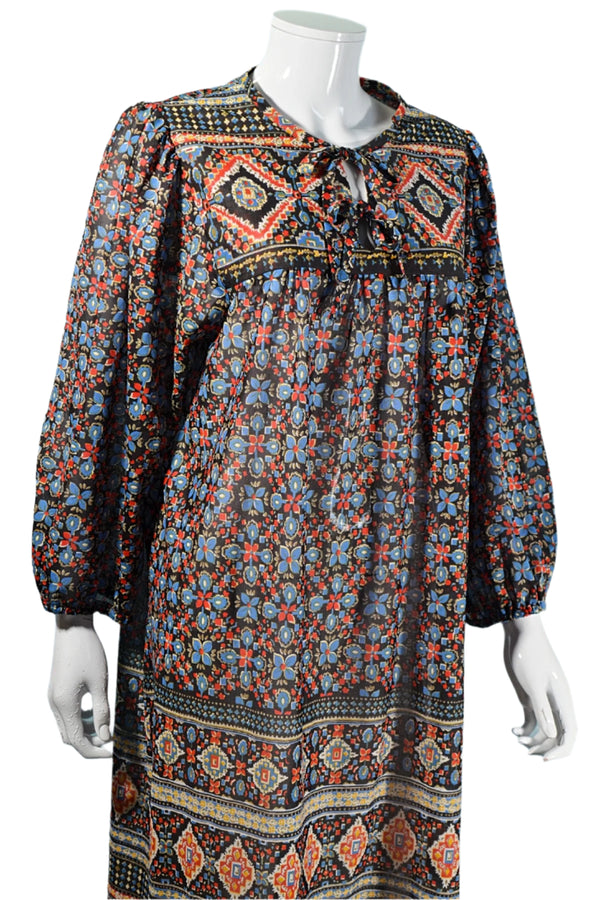 70s Boho Ethnic Print Dress, OS