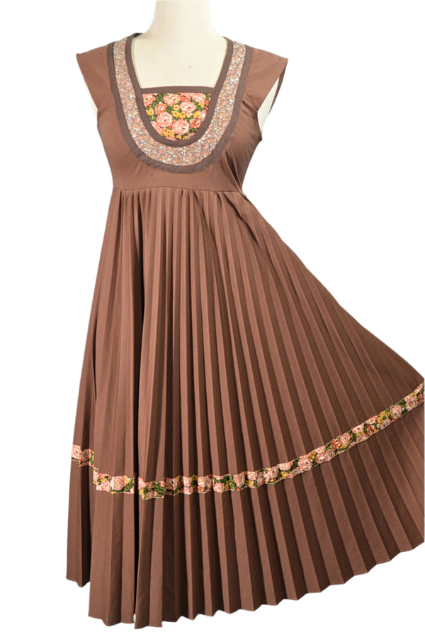 70s Nipon Boutique Floral Dress, Pleated Dark Academia Dress S