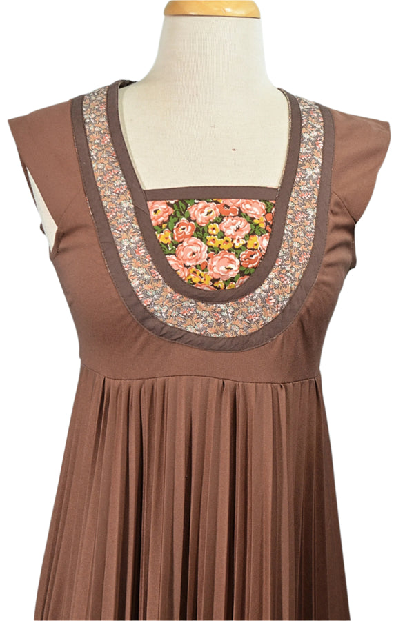 70s OOPS California, Patchwork Pleated Hippie Dress, XS