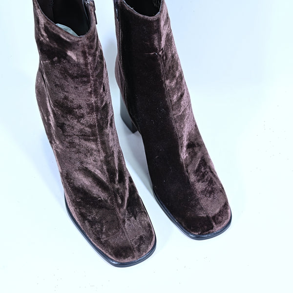 90s Unworn Brown Velvet Ankle Boots, Y2K Nine West Boots SZ 8 1/2M