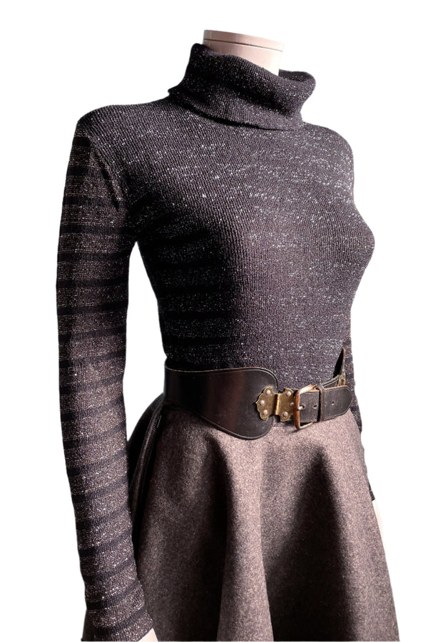 Vintage 60s/70s Black/Silver Lurex Turtleneck Top S