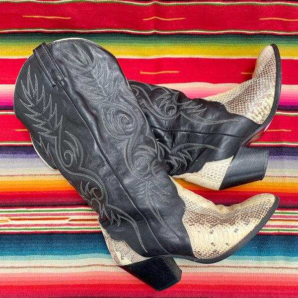 Vintage Acme Womens Western Boots, Black Leather/Snakeskin Boots 6M