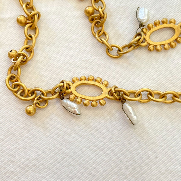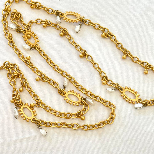 Vintage 90s Gold Vermeil Freshwater Pearl Long Necklace