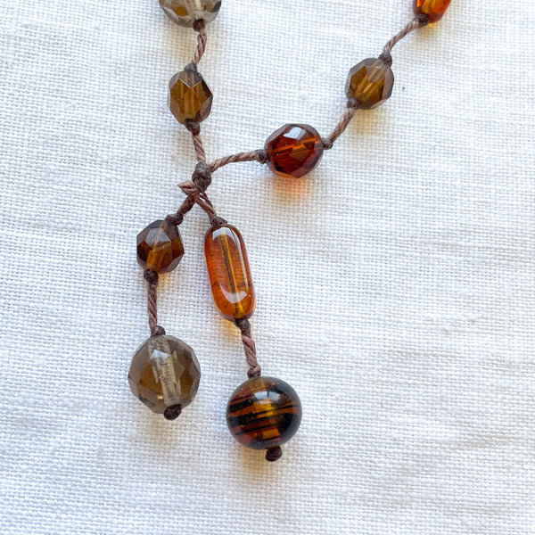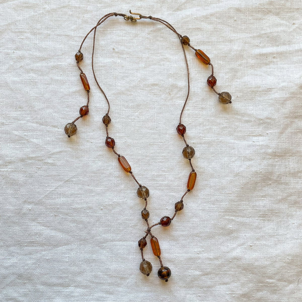 Vintage 90s Handmade Glass/Crystal Bead Necklace, Hand Knotted Lariat Minimalist Necklace