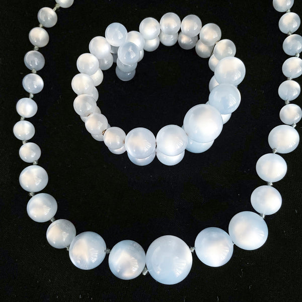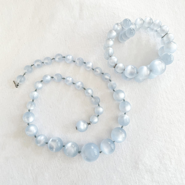 Vintage MCM Light Ice Blue Moonglow Beaded Necklace & Bracelet Set