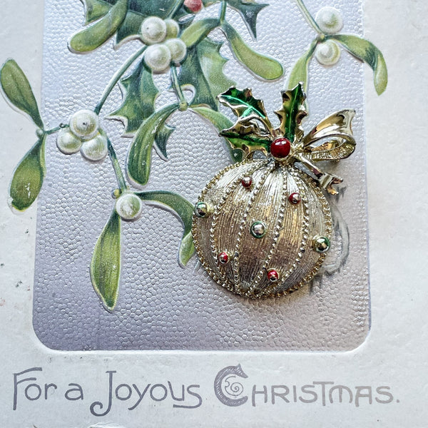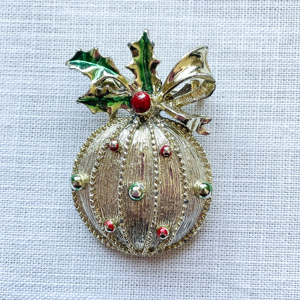 Vintage MCM Christmas Ornament Brooch, Gold Tone Costume Jewelry by Gerrys