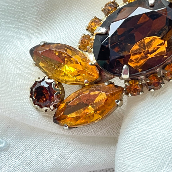 Vintage MCM Topaz Gold Rhinestone Brooch, Gold Tone Small Costume Brooch