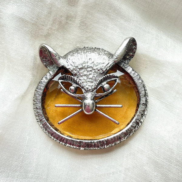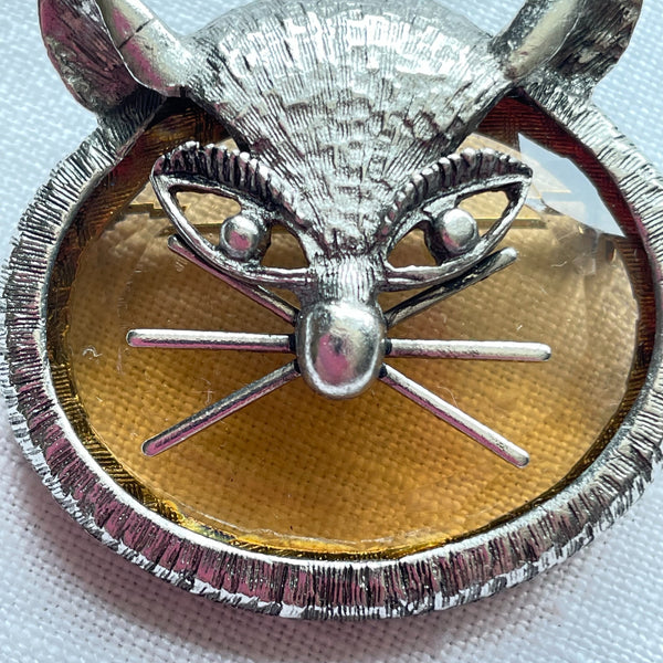 Vintage MCM Cat Face Brooch/Pendant, Modernist Cat Costume Jewelry