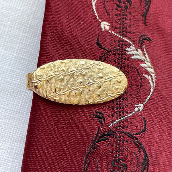 Vintage MCM Gold Tone Filigree Tie Clip, Raised Swirl Pattern 1" L