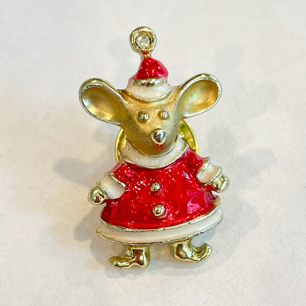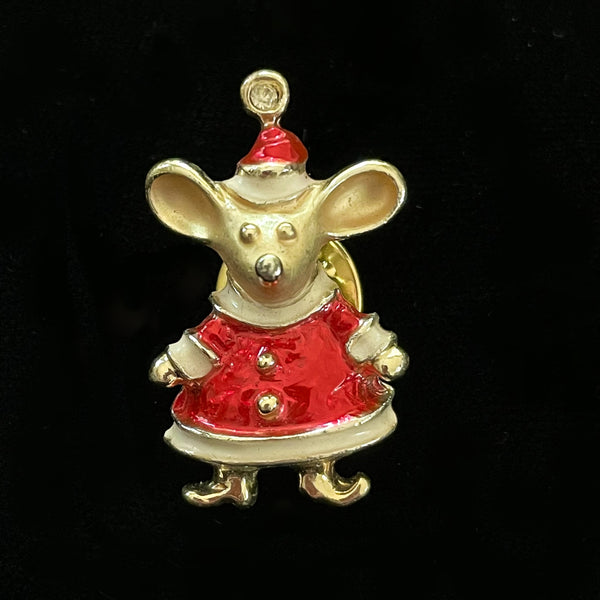 Vintage MCM Small Christmas Mouse Pin/Brooch, Gusti
