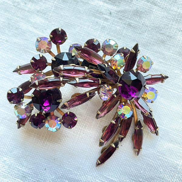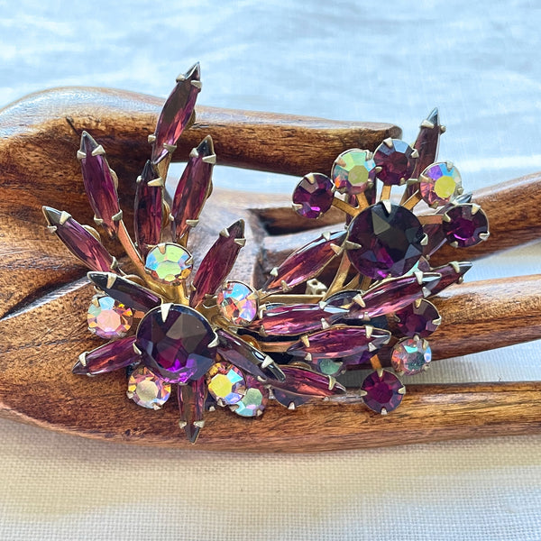Vintage MCM Purple Rhinestone Aurora Borealis Brooch