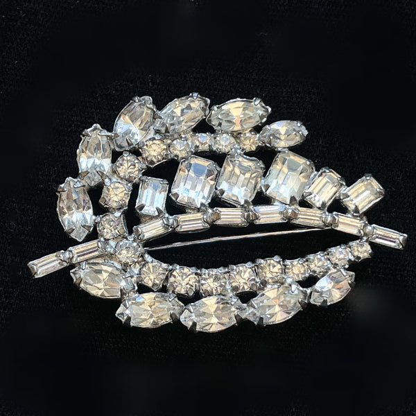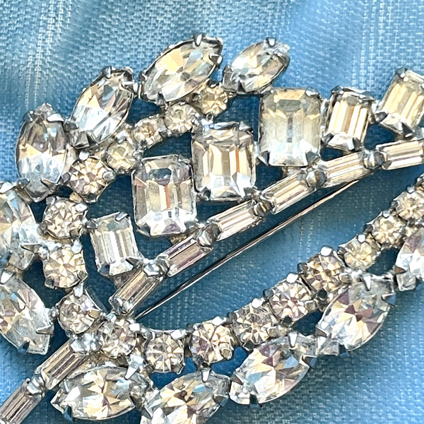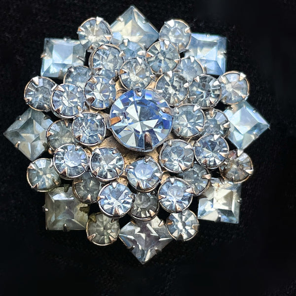 Vintage MCM Pale Blue Rhinestone Broches, 2 Piece Matching Set