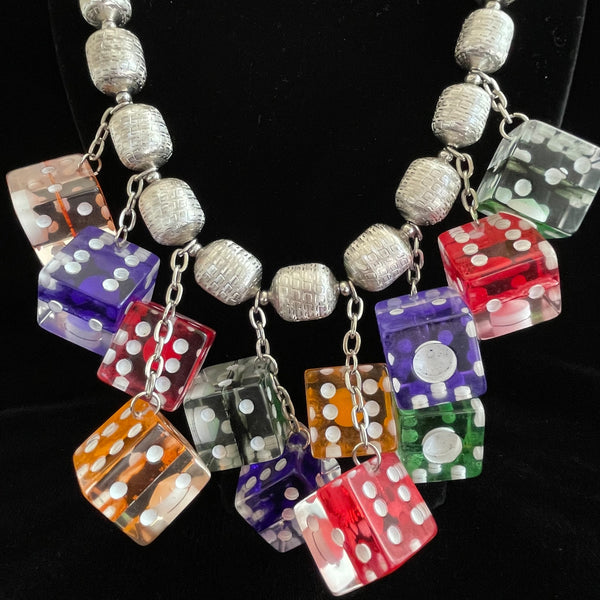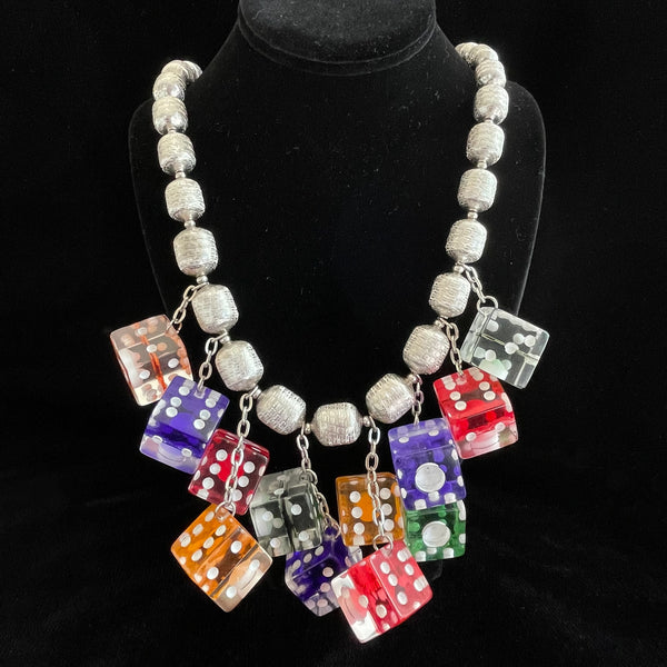 Vintage Monet Novelty Dice Charm Necklace, Statement/Runway Necklace
