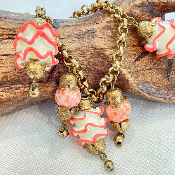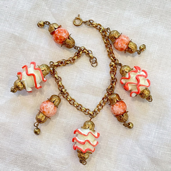 Vintage Murano Glass Bauble Bangle Charm Bracelet, Gold Tone