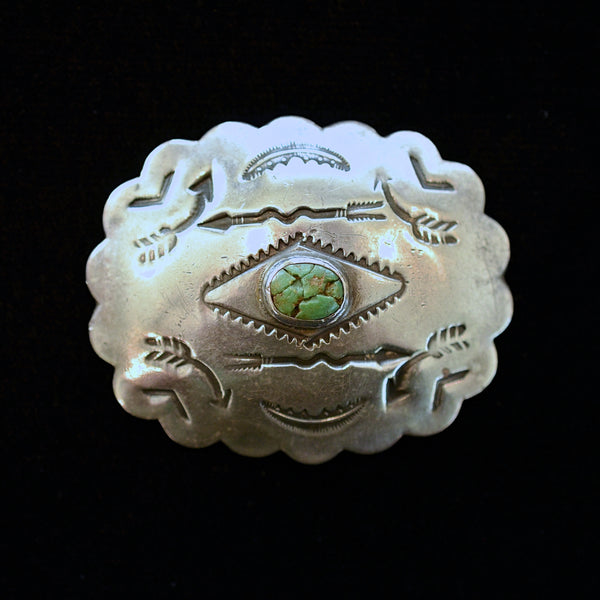 Vintage Native American Stamped Brooch, Silver Turquoise Concho Pin