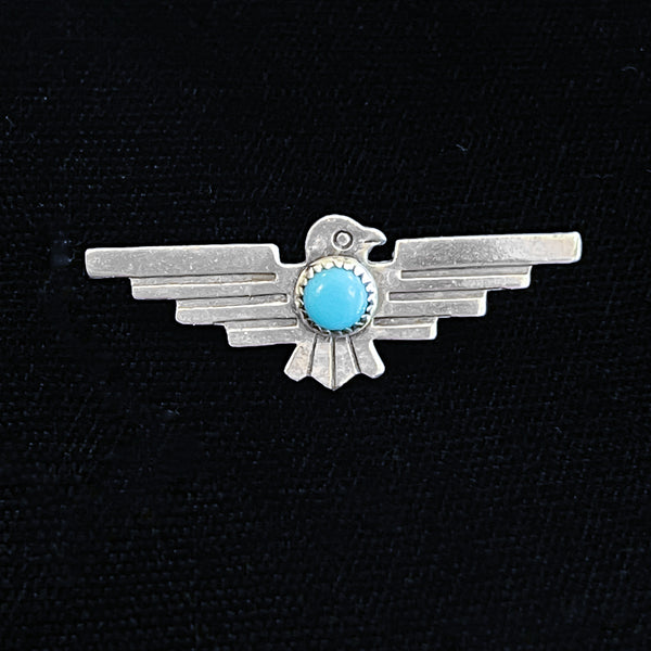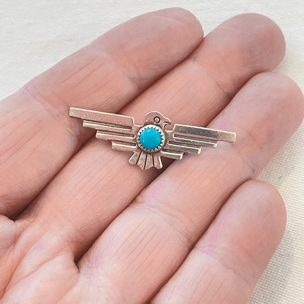 Vintage Sterling Silver Turquoise Thunderbird Brooch, Fred Harvey Era Pin 1 3/8" L
