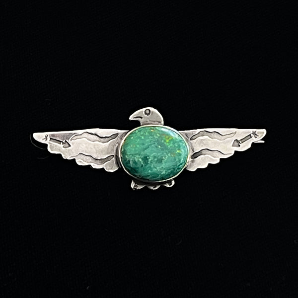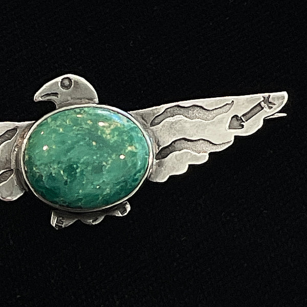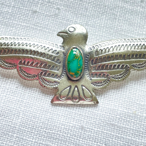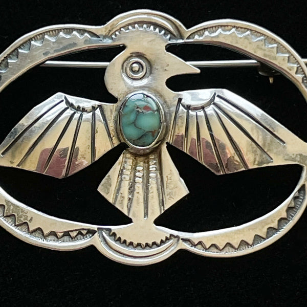 Vintage Sterling Silver Turquoise Thunderbird Brooch, Fred Harvey Era Pin