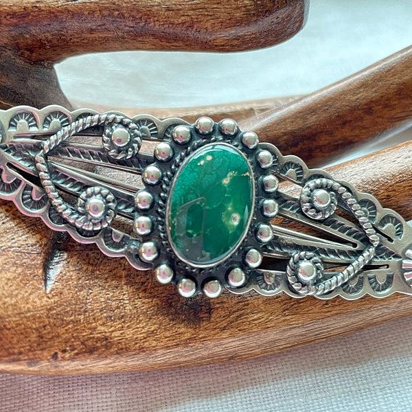 Vintage Sterling Bell Trading Fred Harvey Bracelet, Turquoise Silver Stamped Cuff